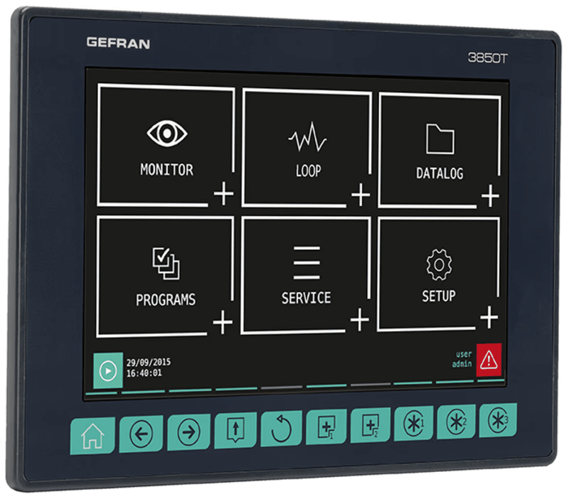 3850T Multifunction controller is an all-in-one device. It combines precision PID controllers, secure datalogging, batch reporting, Set Point Programmer (Ramp & Soak), and powerful function block that will allow customized programs with sequence control configurability. The brilliant 7” touch graphic interface makes extremely clear the visualization of process parameters. This technology also provides the capability, from the front of the controller, to be configured without the need of connected PC. The 3850T meets the high accuracy standards of the Aerospace and Automotive Industries with CQI9 and AMS2750.