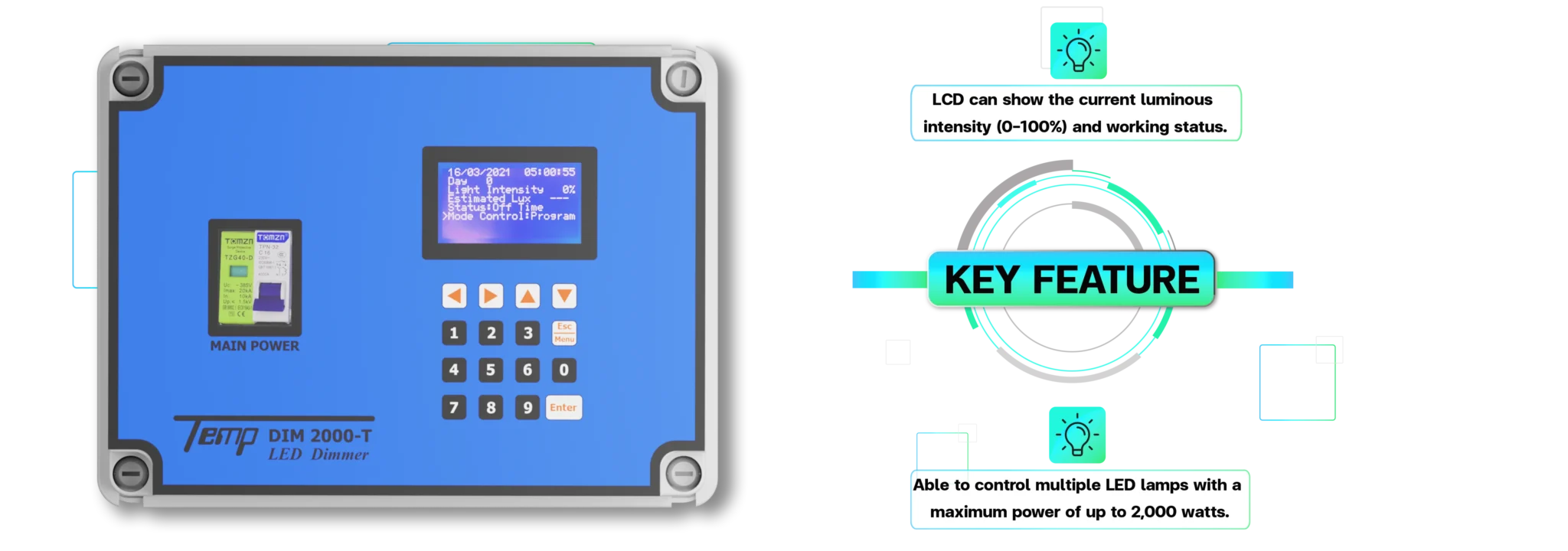 • Max. Power for LED Lamp 2000 watts.